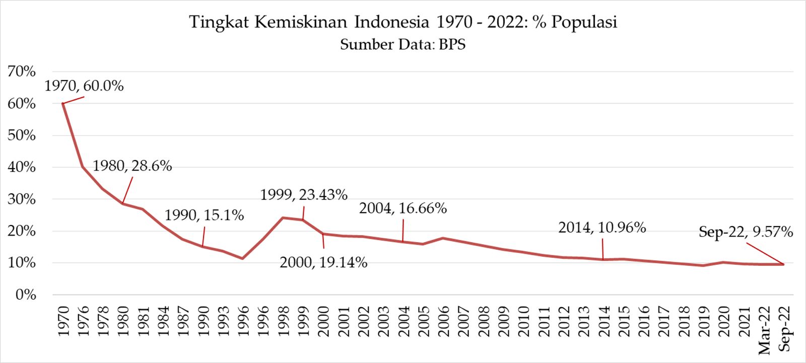 Pemerintahan Soeharto berhasil memberantas kemiskinan turun 31,4 persen dalam sepuluh tahun periode 1970-1980.